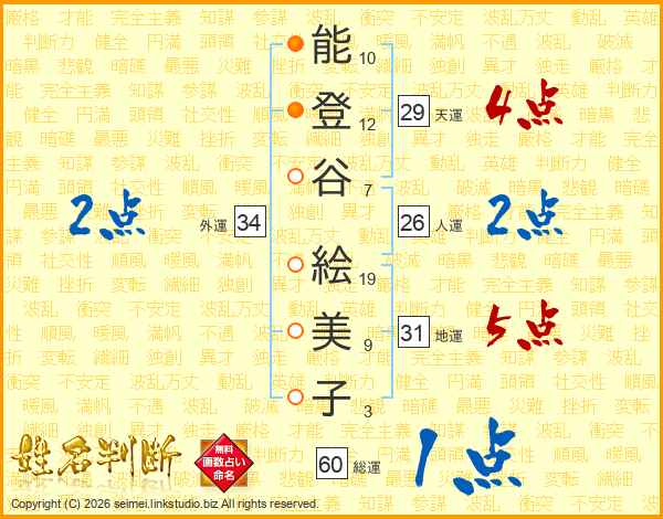 能登谷絵美子さんの人運は26画の2点!