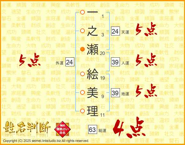 一之瀬絵美理さんの総運は63画の4点!