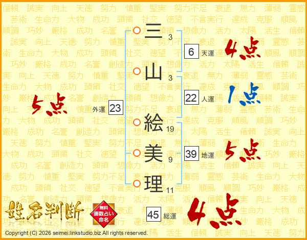 三(3画)山(3画) 絵(19画)美(9画)理(11画)