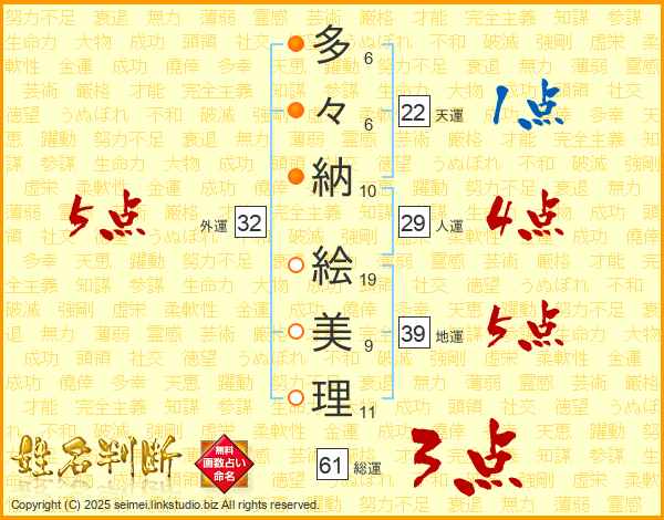 多(6画)々(6画)納(10画) 絵(19画)美(9画)理(11画)