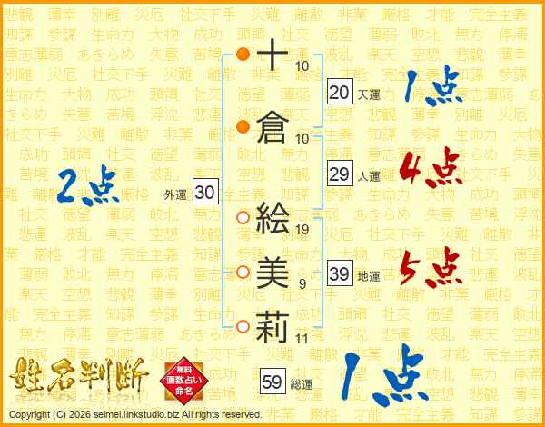 十倉絵美莉さんの地運は39画の5点!