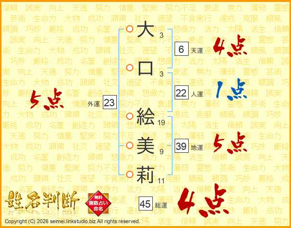 大口絵美莉さんの地運は39画の5点!