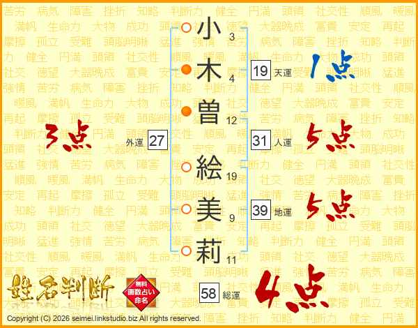 小木曽絵美莉さんの地運は39画の5点!