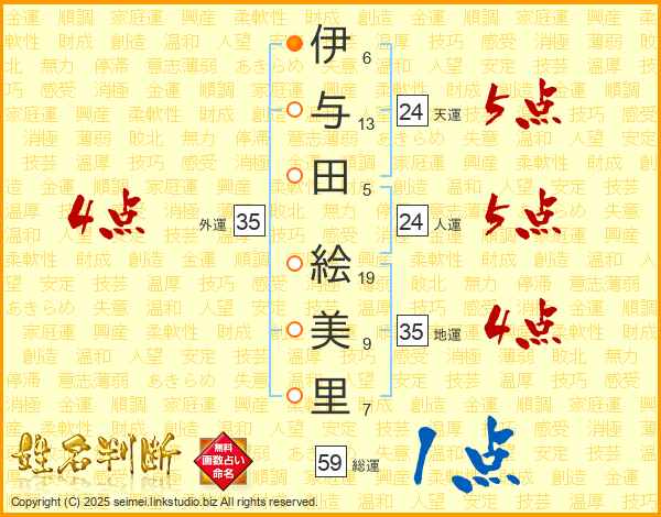伊与田絵美里さんの人運は24画の5点!
