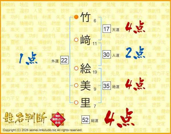 竹﨑絵美里さんの総運は52画の4点!
