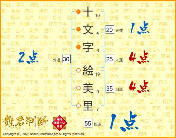 十(10画)文(4画)字(6画) 絵(19画)美(9画)里(7画)