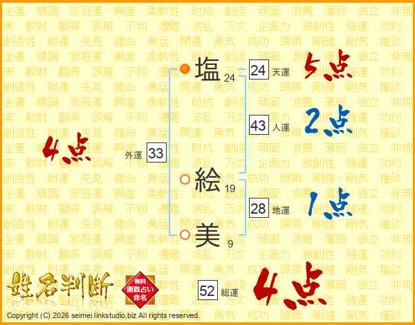 塩(24画) 絵(19画)美(9画)