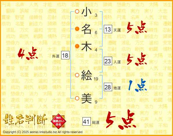 小名木絵美さんの総運は41画の5点!