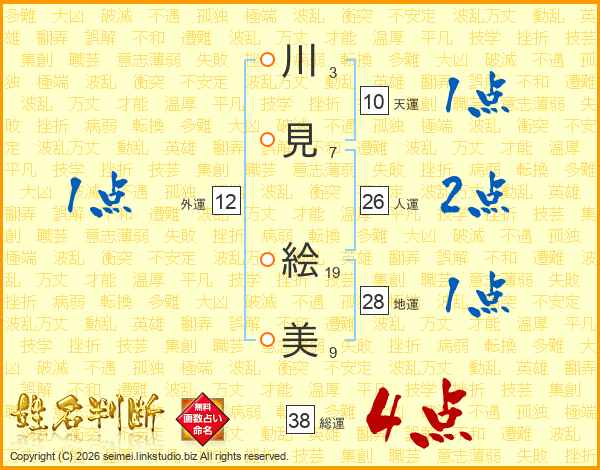 川見絵美さんの総運は38画の4点!