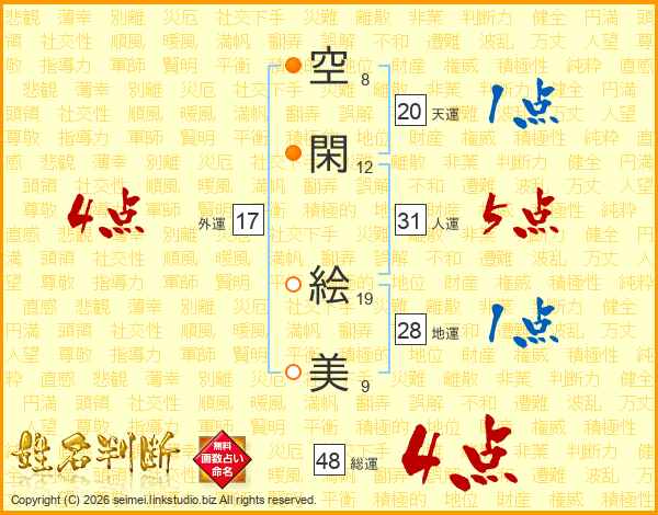 空閑絵美さんの人運は31画の5点!