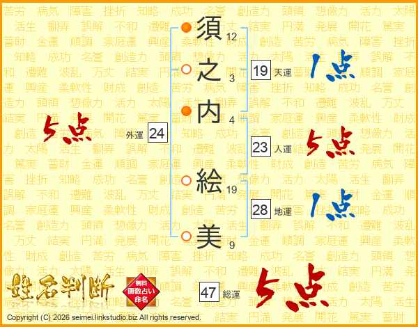 須之内絵美さんの総運は47画の5点!