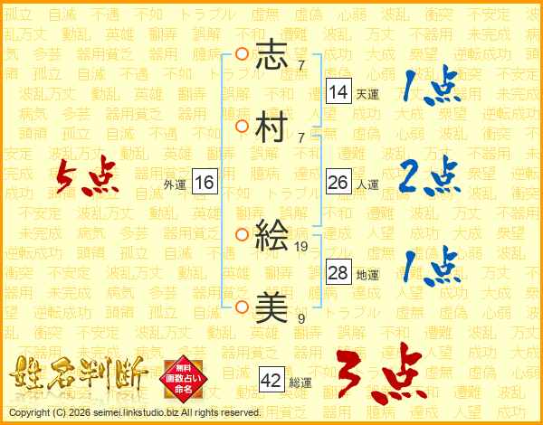 志村絵美さんの人運は26画の2点!