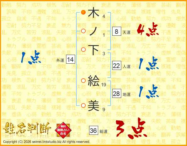 木ノ下絵美さんの総運は36画の3点!