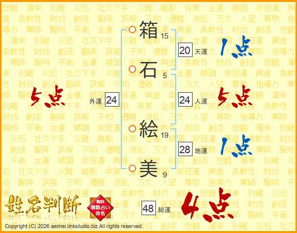 箱石絵美さんの総運は48画の4点!