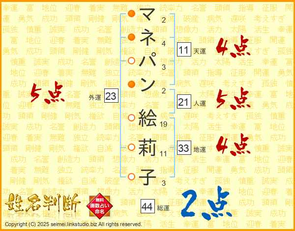 マネパン絵莉子さんの総運は44画の2点!