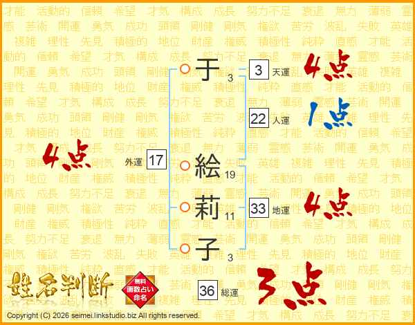 于絵莉子さんの外運は17画の4点!