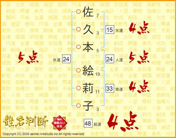佐久本絵莉子さんの総運は48画の4点!