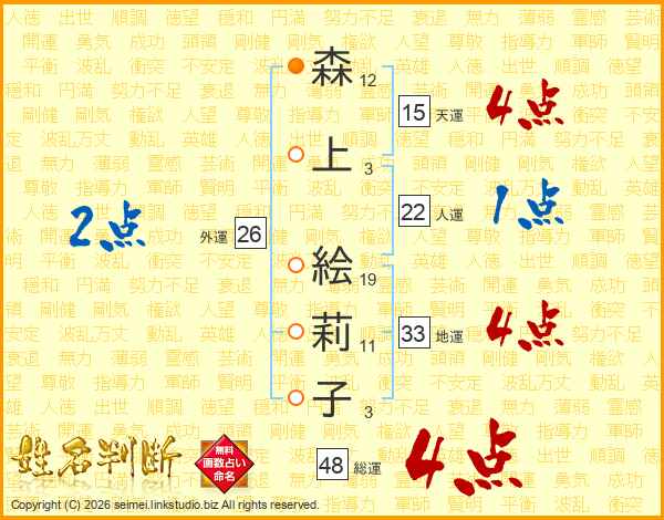 森上絵莉子さんの総運は48画の4点!