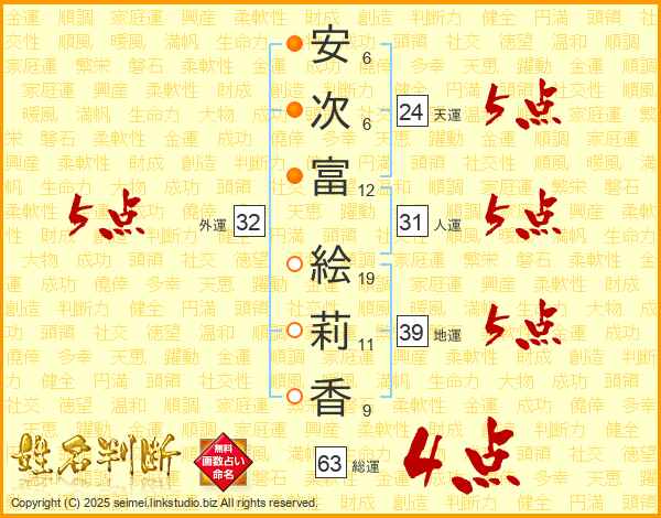 安次富絵莉香さんの総運は63画の4点!