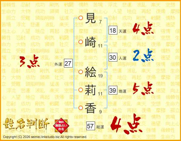 見崎絵莉香さんの総運は57画の4点!