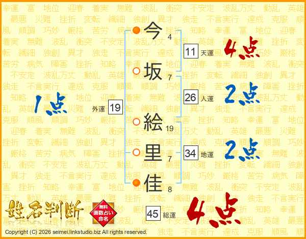 今坂絵里佳さんの総運は45画の4点!