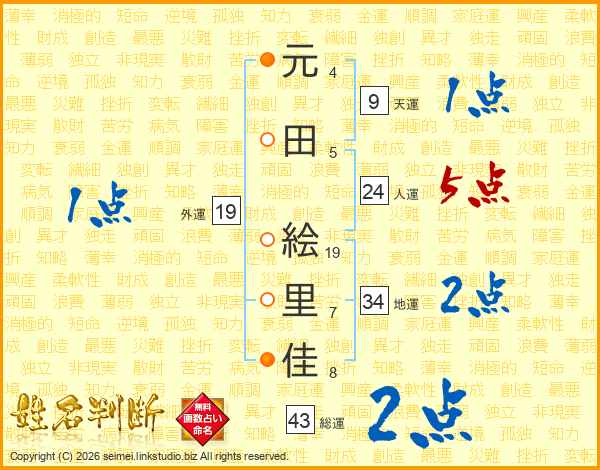元田絵里佳さんの人運は24画の5点!