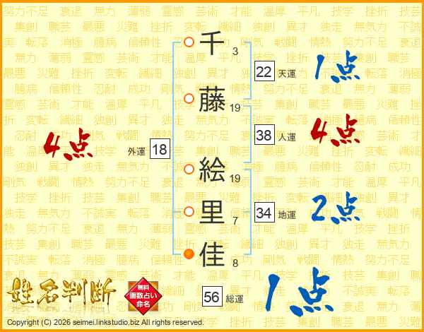 千藤絵里佳さんの総運は56画の1点!