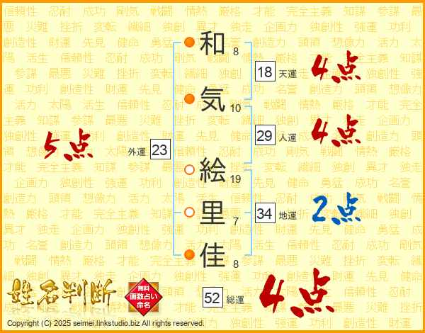 和気絵里佳さんの総運は52画の4点!