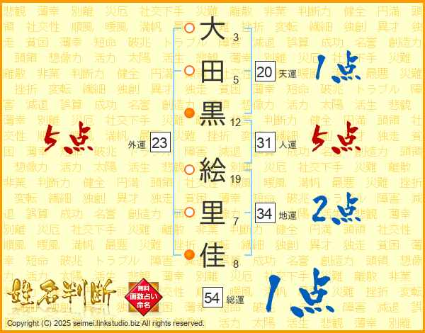 大田黒絵里佳さんの人運は31画の5点!