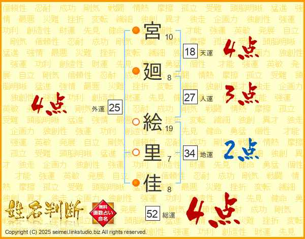宮廻絵里佳さんの総運は52画の4点!