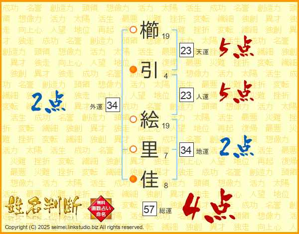 櫛(19画)引(4画) 絵(19画)里(7画)佳(8画)