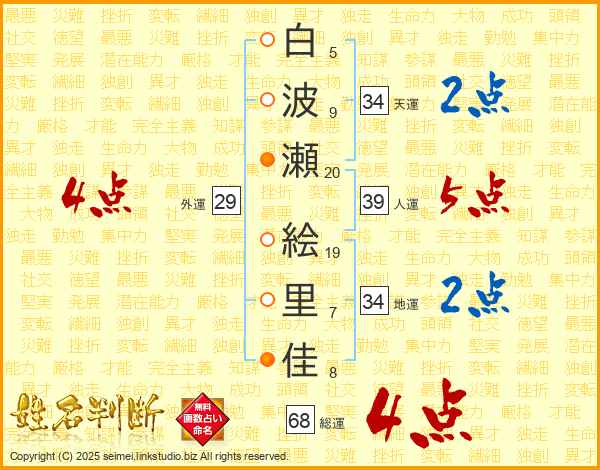 白波瀬絵里佳さんの総運は68画の4点!