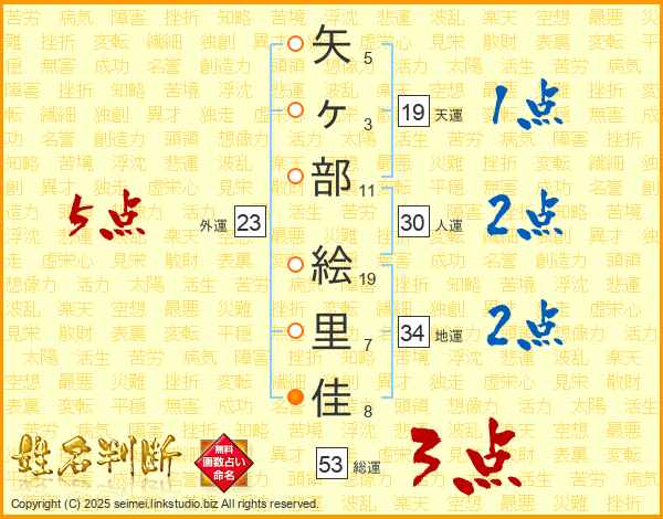 矢ヶ部絵里佳さんの天運は19画の1点!
