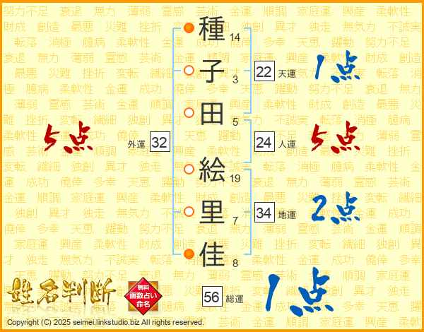 種子田絵里佳さんの人運は24画の5点!