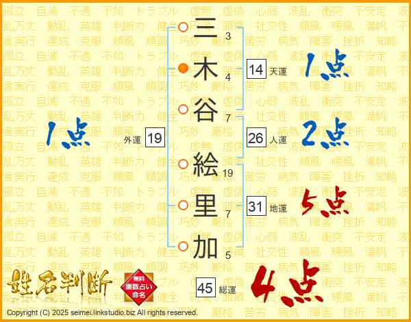 三木谷絵里加さんの総運は45画の4点!