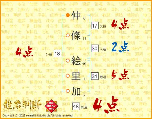 仲條絵里加さんの天運は17画の4点!