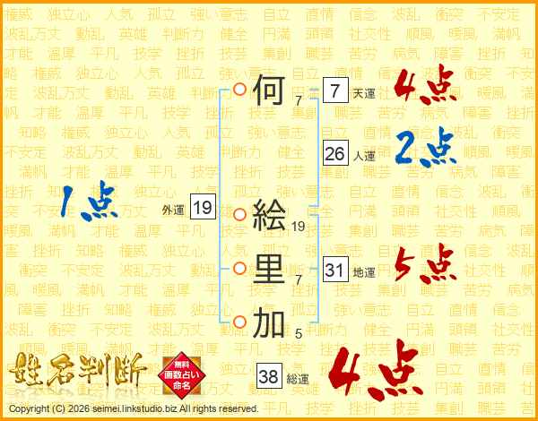 何絵里加さんの総運は38画の4点!