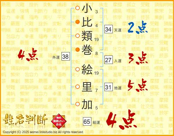 小比類巻絵里加さんの総運は65画の4点!
