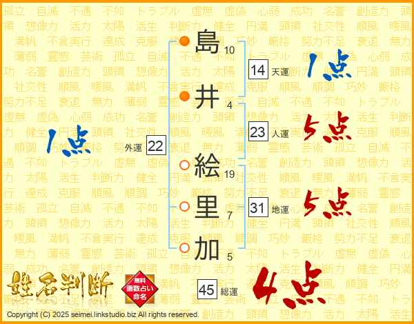 島井絵里加さんの総運は45画の4点!