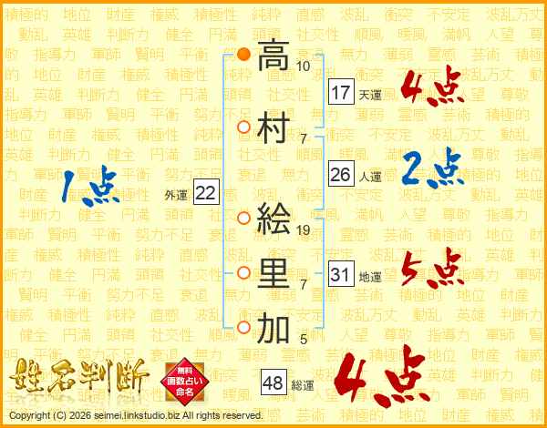 高村絵里加さんの地運は31画の5点!