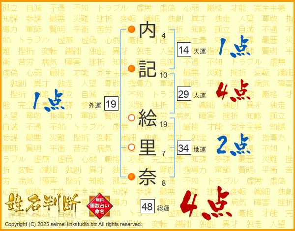 内(4画)記(10画) 絵(19画)里(7画)奈(8画)
