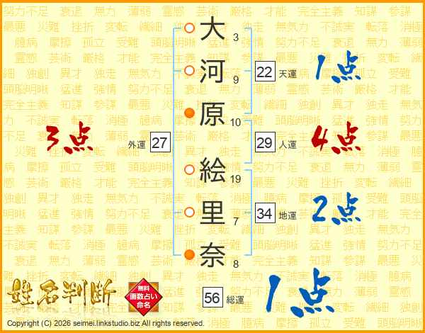 大河原絵里奈さんの総運は56画の1点!