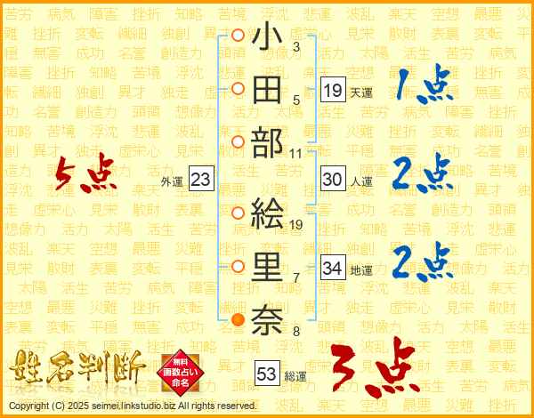 小田部絵里奈さんの総運は53画の3点!