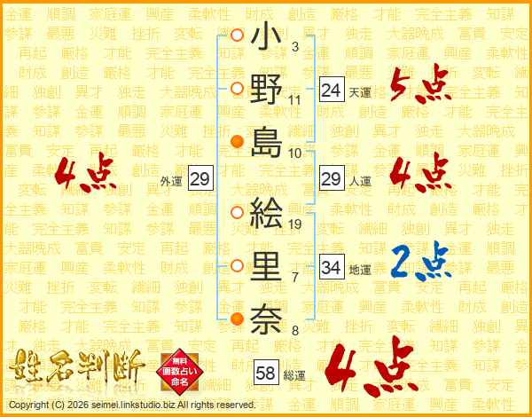 小野島絵里奈さんの総運は58画の4点!