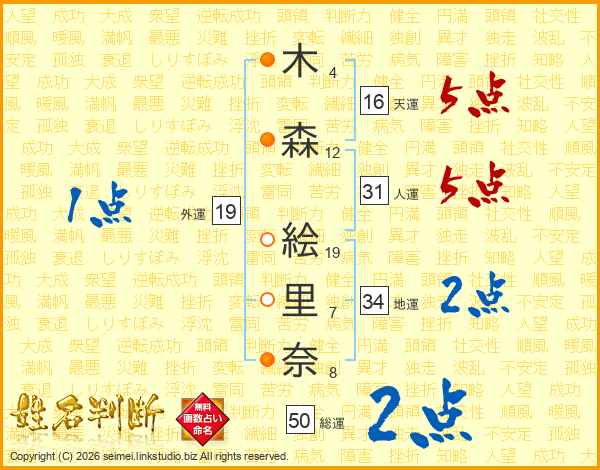 木森絵里奈さんの人運は31画の5点!