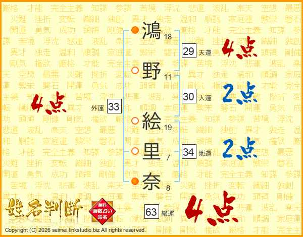 鴻野絵里奈さんの総運は63画の4点!