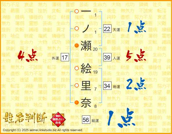 一ノ瀬絵里奈さんの総運は56画の1点!