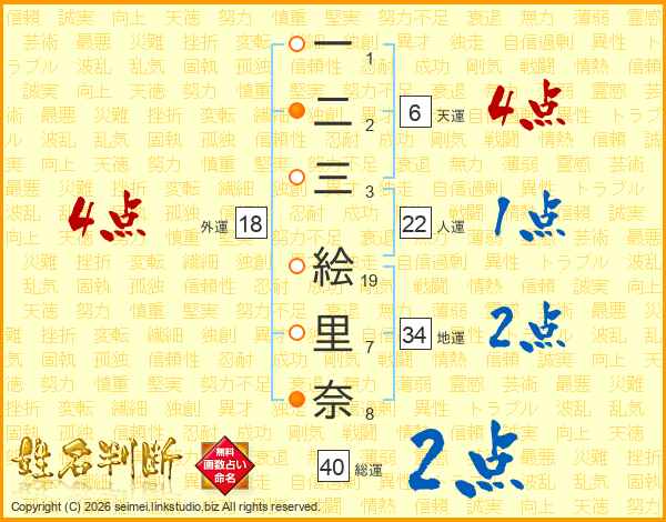 一二三絵里奈さんの総運は40画の2点!