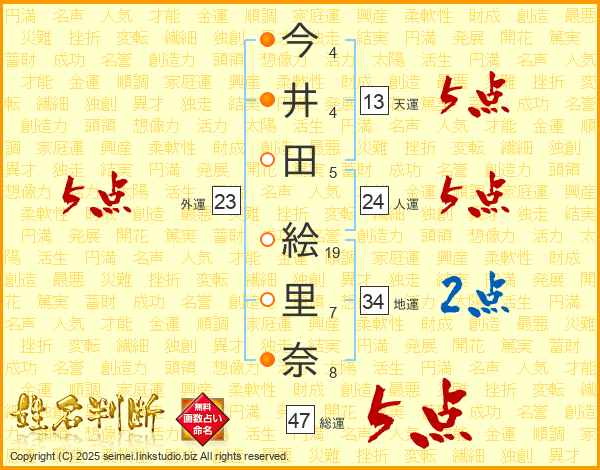 今井田絵里奈さんの総運は47画の5点!