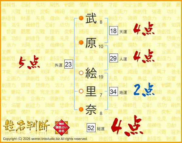 武原絵里奈さんの総運は52画の4点!